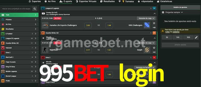 O 995bet login oferece uma grande seleção de opções de apostas em e-sports com probabilidades competitivas